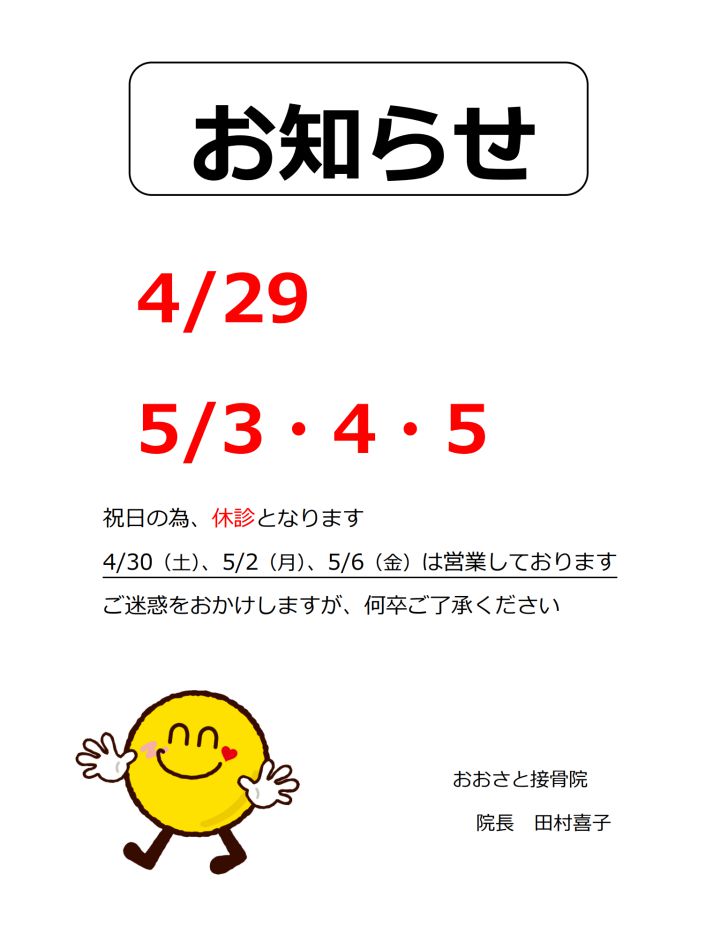 休診日のお知らせです